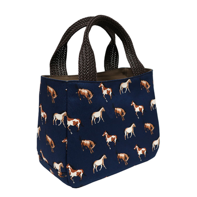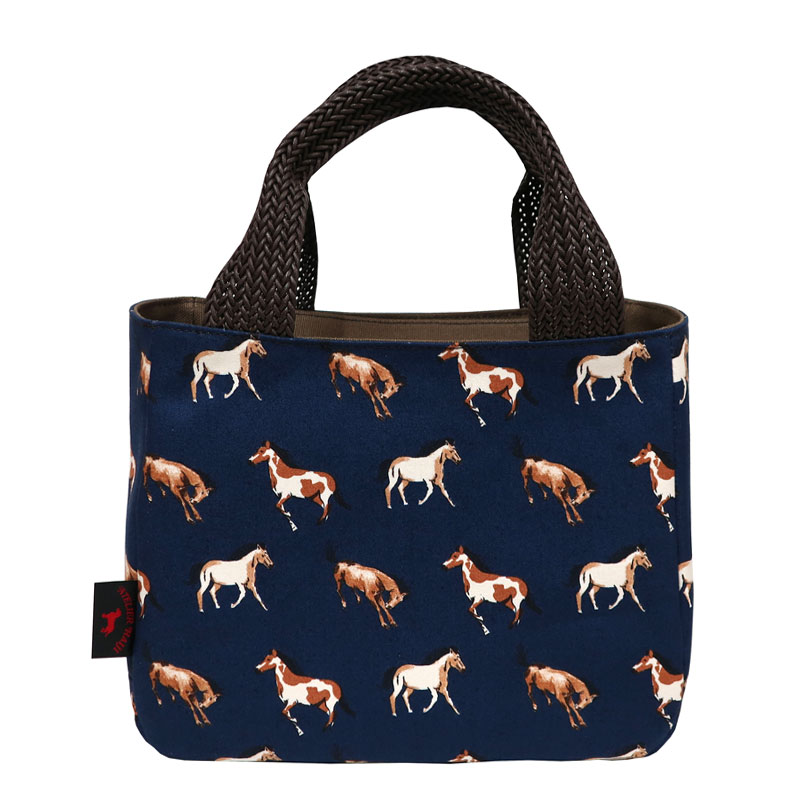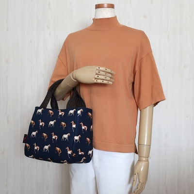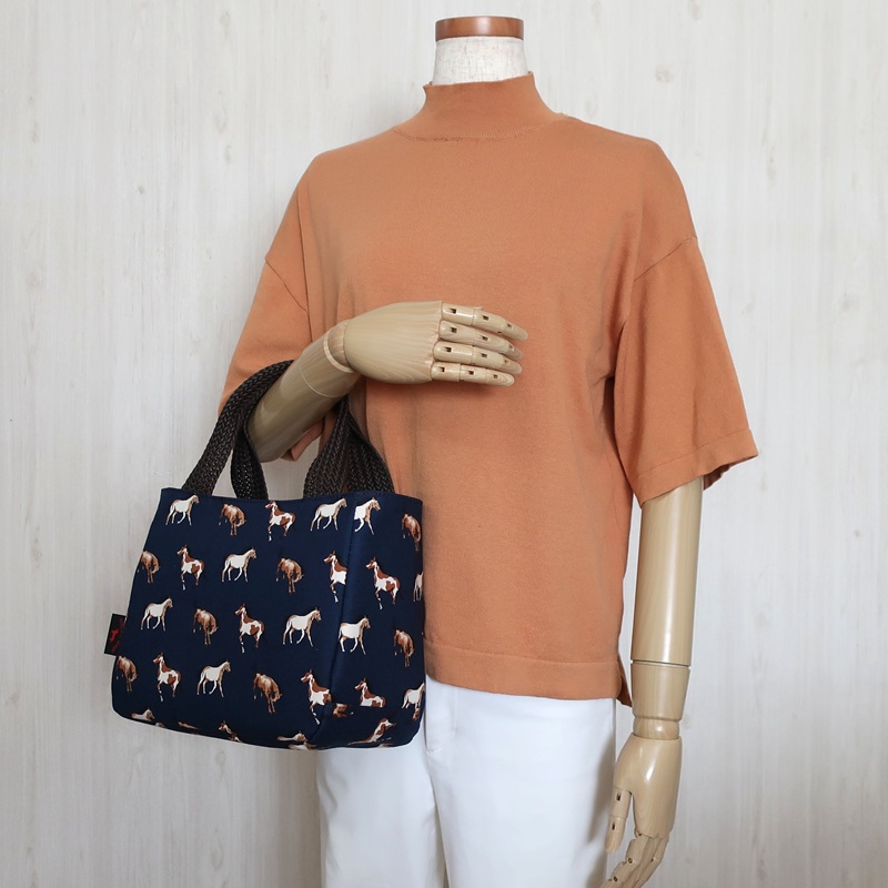 目隠しフラップ付き馬柄手提げトート