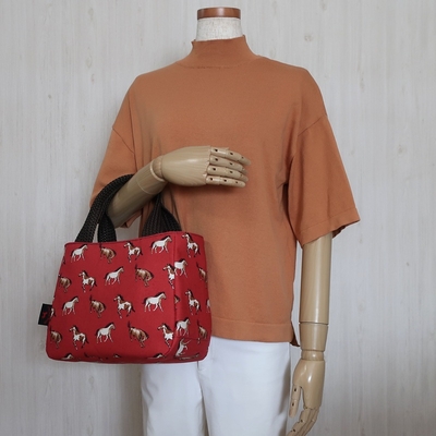 目隠しフラップ付き手提げトート/プチホース/レッド