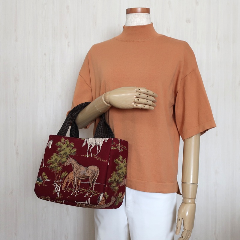 目隠しフラップ付き手提げトート/カントリーヤード/ワイン